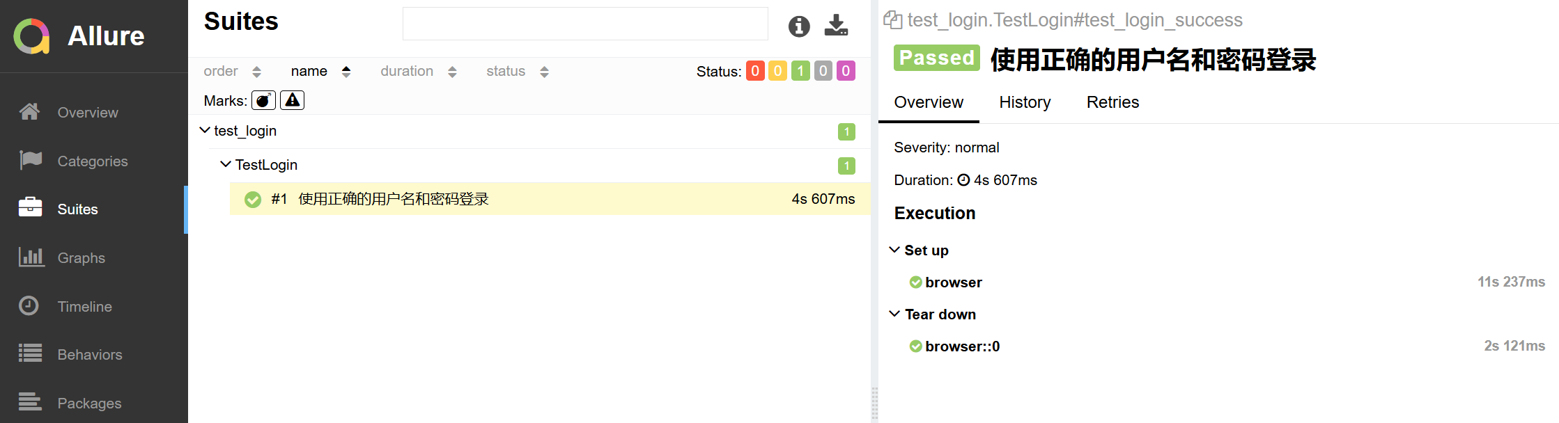 点击左侧的菜单Suites,可以看到更详细的用例情况
