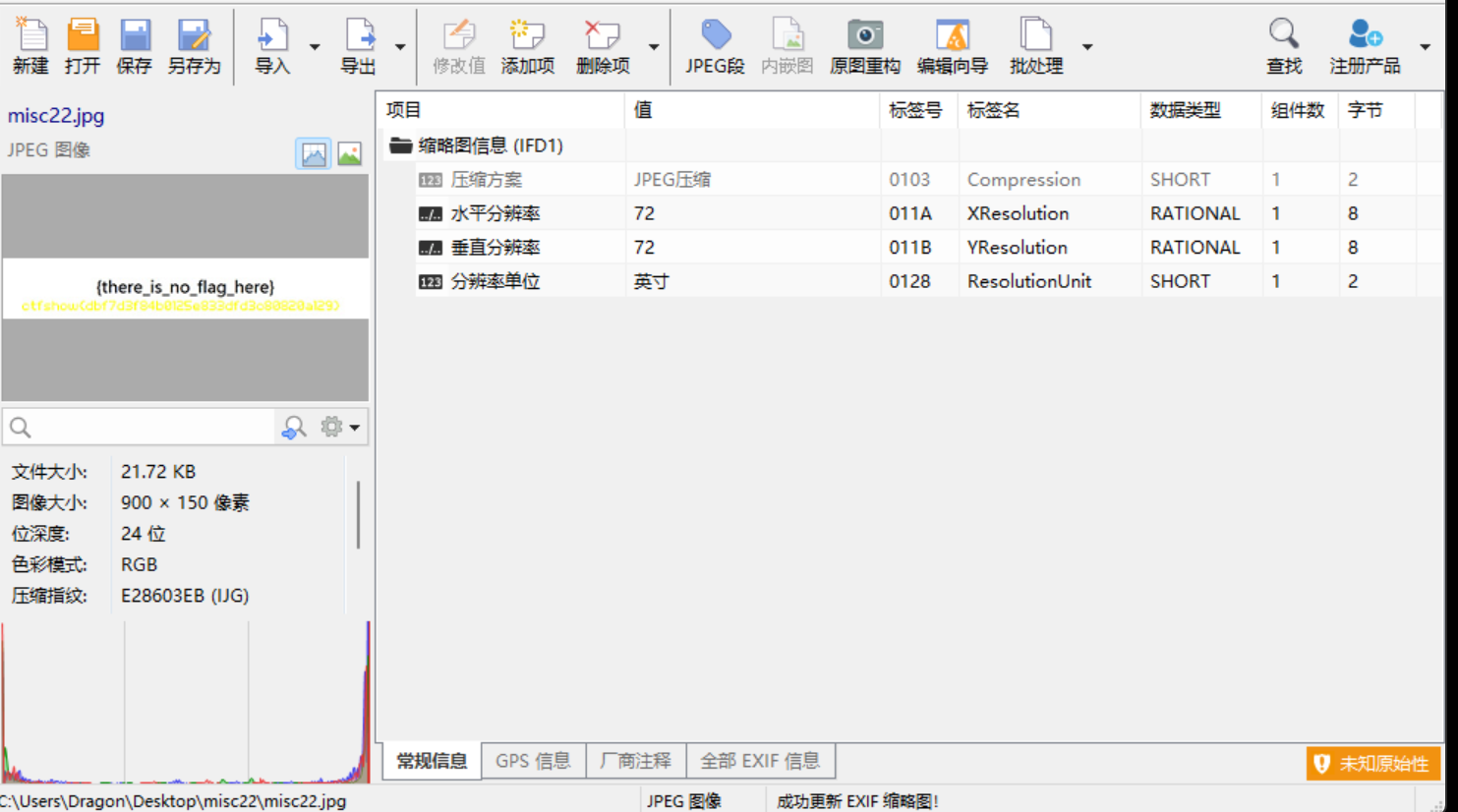 根据提示用信息查看器打开图片看里面的评论,根据谐音即可得到flag