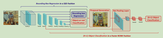 当训练数据很小时,为了提高训练的效率,作者减小训练的复杂度。网络结构如图1所示。结合了Faster R-CNN与SSD方法对low-shot detection实现高效率边界框回归和目标分类。