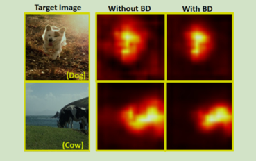 图三背景抑制正则化(BD),在特征通道上对卷积特征图(conv5 - 3)进行平均得到特征热图。BD可以有效地减轻特征热图上的背景干扰,从而使LSTD能够聚焦于目标物体。