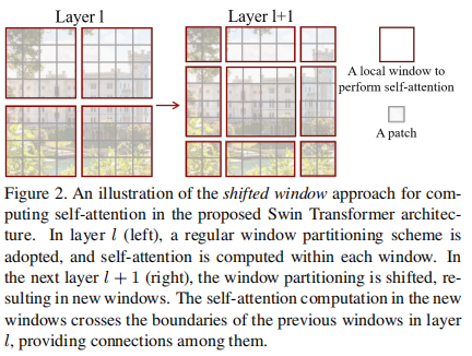 图3 shift-window attention 图4 Swin-transformer的层次化结构