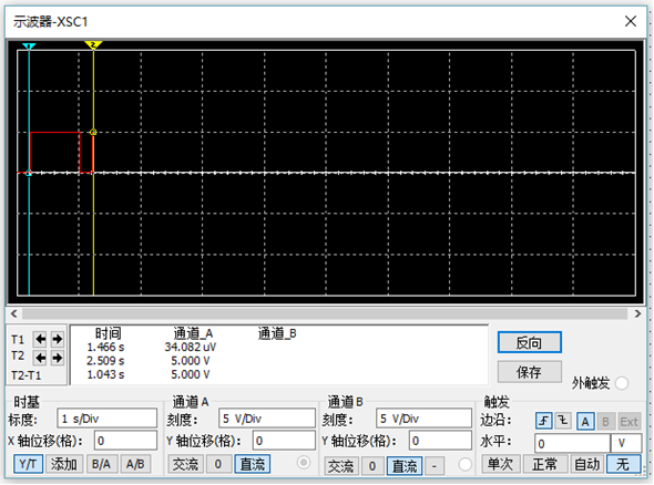 由测试图可得时钟电路的输出峰值为5V,周期为1s。与设计相符。
