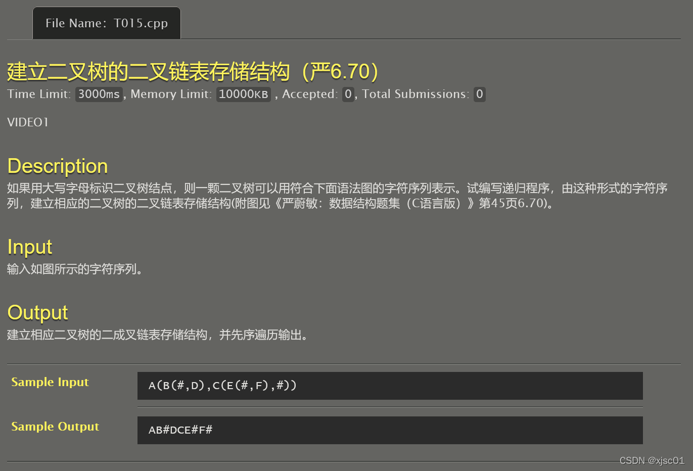 建立二叉树的二叉链表存储结构(严6.70)--------西工大noj