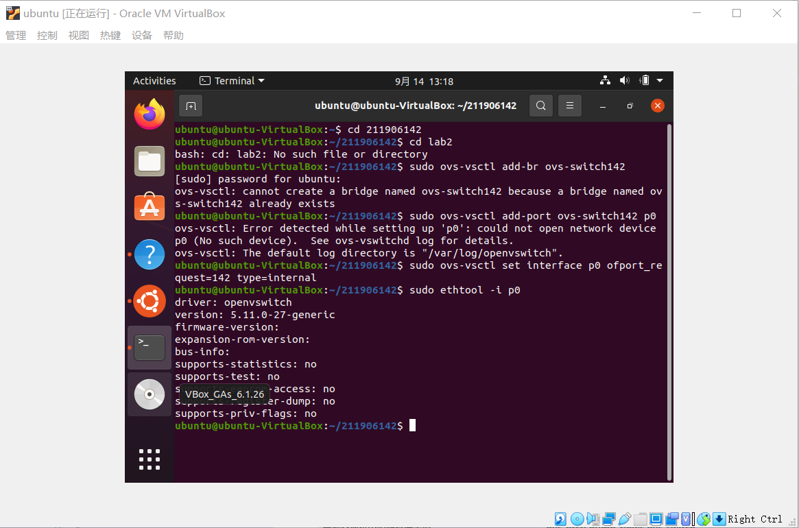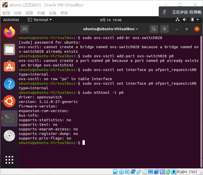 实验心得:在这次的实验中,我了解了Open vSwitch的基本操作。我能够跟着群里的文件,来理解每一条命令的用法。因为没怎么接触过网络的问题,所以对SDN拓扑,配置端口,之类的有些困难。