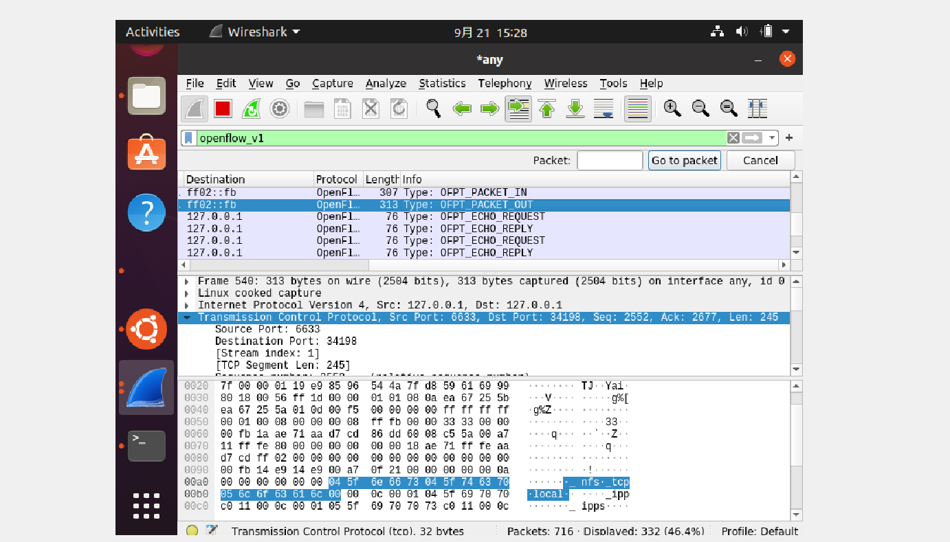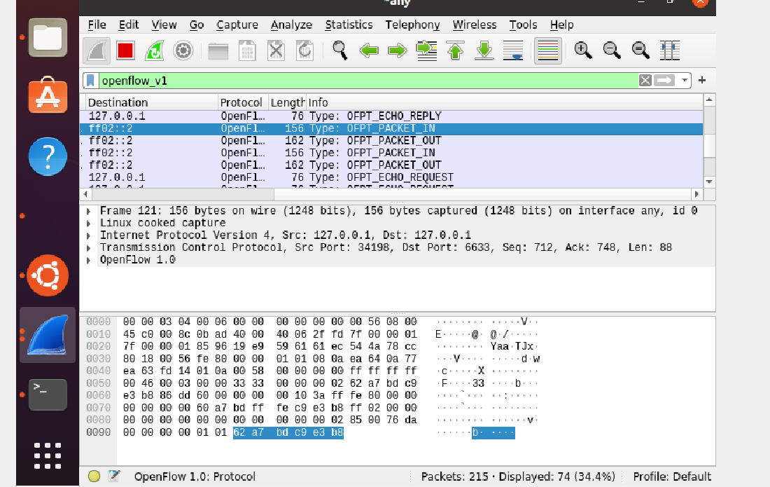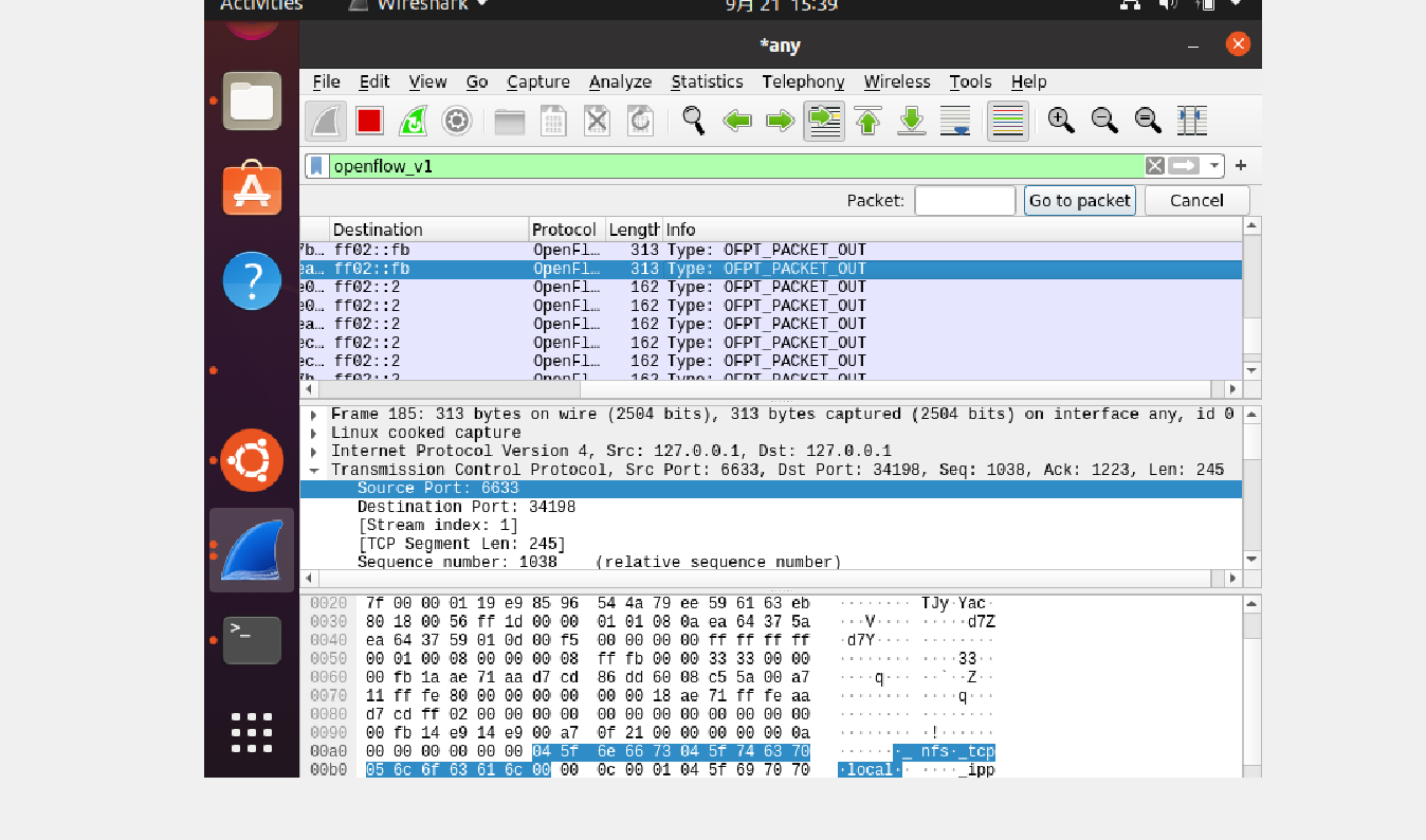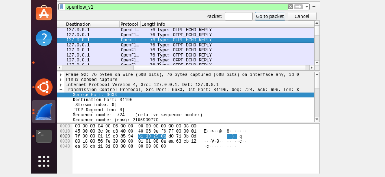 - 能够运用 wireshark 对 OpenFlow 协议数据交互过程进行抓包;