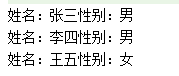 字符串数组当中存有多条信息,请按照格式“姓名:XX。性别:XX。”格式将信息打印出来。