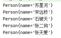 public class Person { private String name; @Override public String toString() { return "Person{" + "name='" + name + '\'' + '}'; } public String getName() { return name; } public void setName(String name) { this.name = name; } public Person() { } public Person(String name) { this.name = name; } }