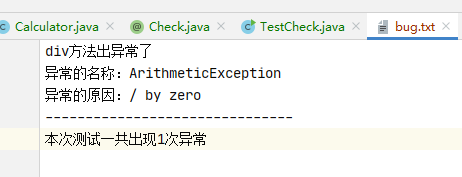当主方法执行后,会自动执行被检测的所有方法(加了check注解的方法),判断方法是否有异常,记录到文件中