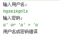 select * from user where username = “” and password = “”;