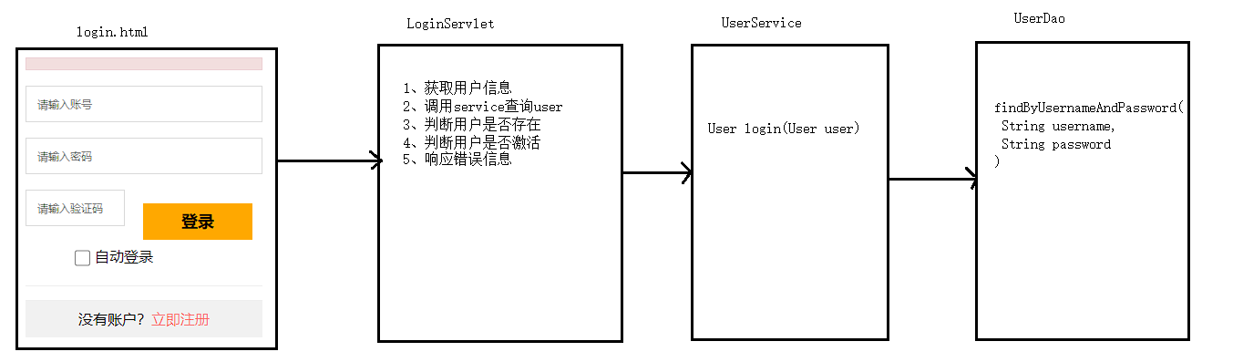 /** * 登录方法 * @param user * @return */ @Override public User login(User user) { return userDao.findByUsernameAndPassword(user.getUsername(),user.getPassword()); }