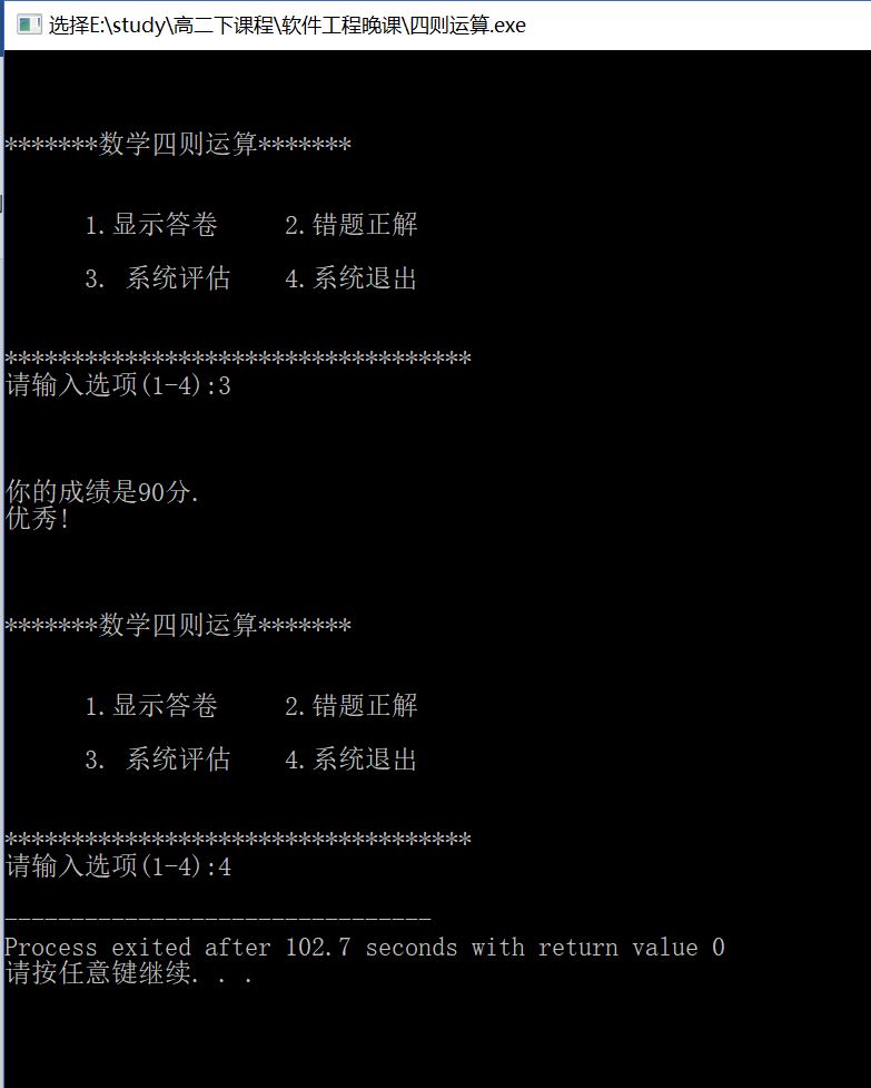 代码3:我们提出了菜单式,有一二三四的选项供选择【估计时间:60分钟】