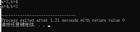 #include <stdio.h> int main() { int a, b,t; a=3; b=4; printf("a=%d,b=%d\n",a,b); t=a; a=b; b=t; printf("a=%d,b=%d\n",a,b); return 0; }