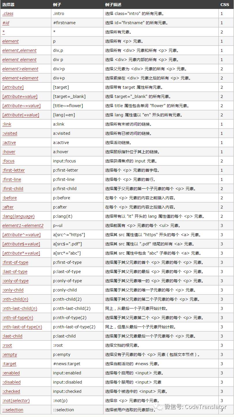 css选择器用法,来自http://www.w3school.com.cn/cssref/css_selectors.asp