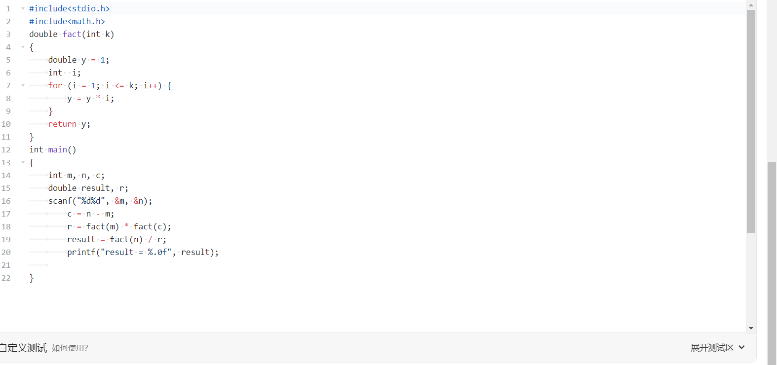 数据处表达式:a=fact(n);b=fact(m);c=fact(n-m);product=product*i;流程结构:for语句循环结构