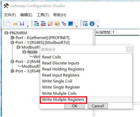 12、Node处插入命令根据从站手册得知需要用到10H功能码(手册并没有标明,但是根据通讯说明第三条可知参数都是浮点数所以肯定要写多寄存器,故用10H功能码);