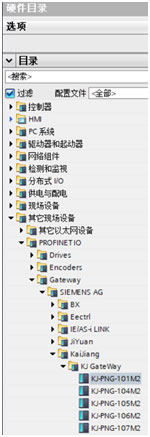 2、在硬件目录中选择对应的Modbus转Profine网关;
