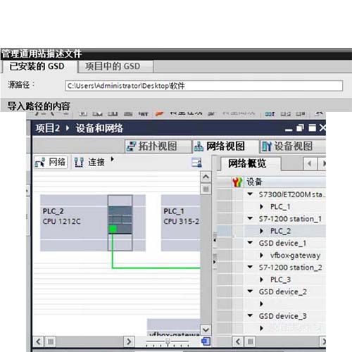在博图软件的主界面上,执行“菜单选项”/“安装设备描述文件(GSD)”。在随后出现的对话框中,安装所需的网关GSD文件。
