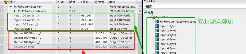 接着,选择Profibus转Profinet网关设备并双击,进入设备视图界面添加所需模块。确保所添加的Input和Output的总数据量(以字节数计算)等于或超过Profibus转Profinet网关配置中定义的从站数据量。