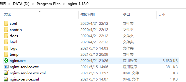 - 将下载的文件 复制到 nginx 目录,修改名称为:nginx-service.exe