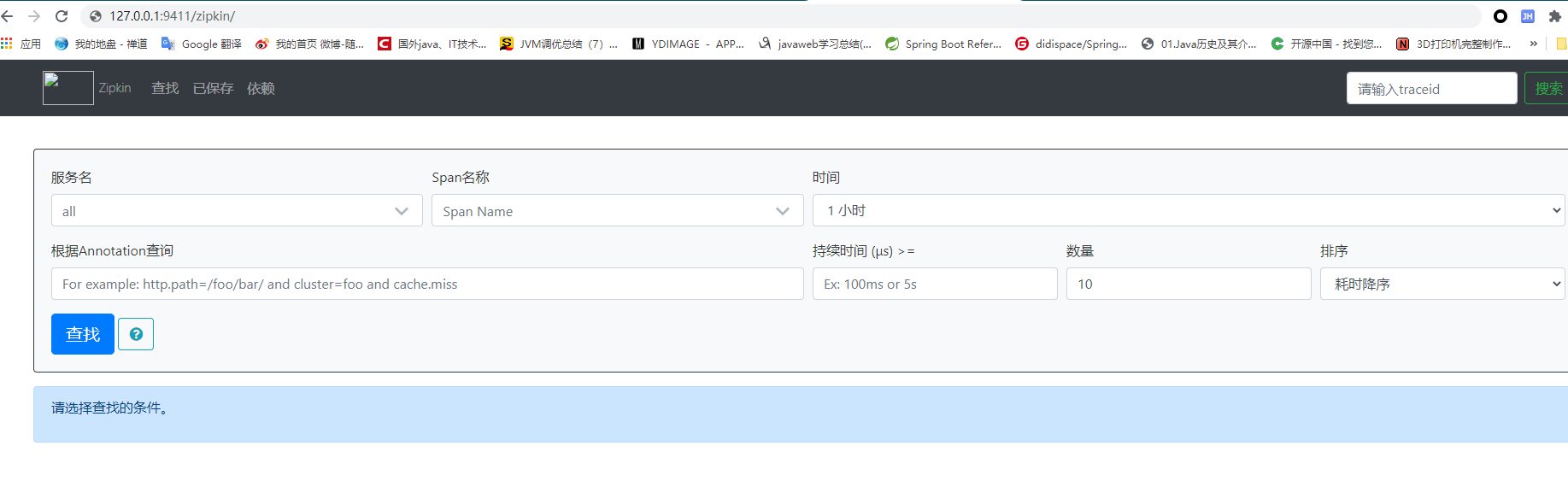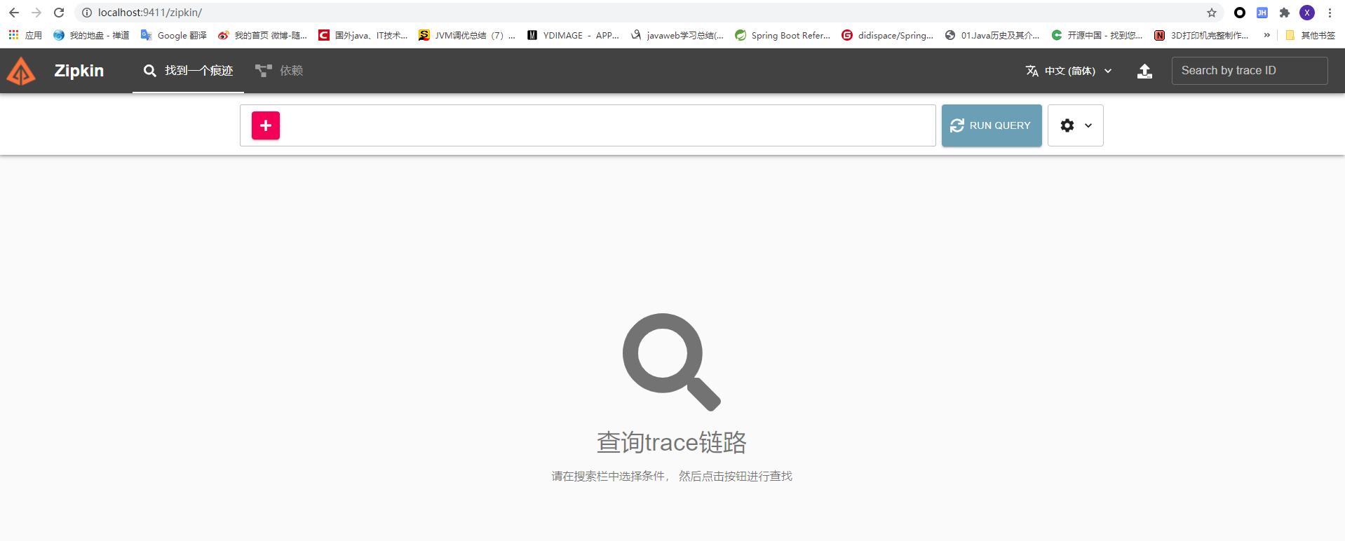 - 浏览器输入:http://127.0.0.1:9411 如下图则说明启动成功