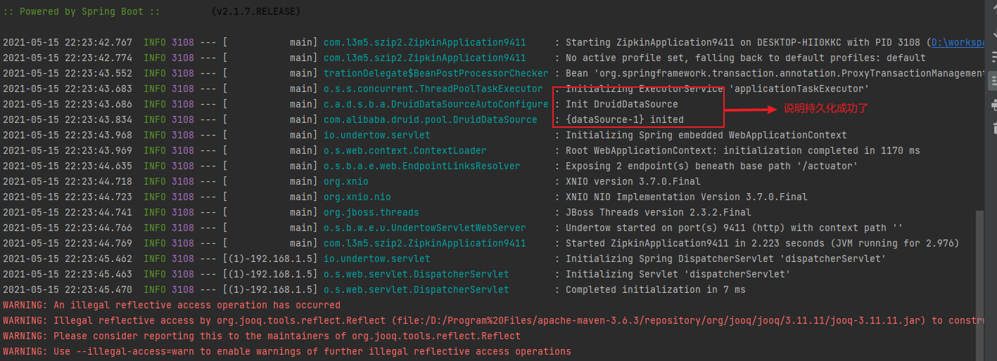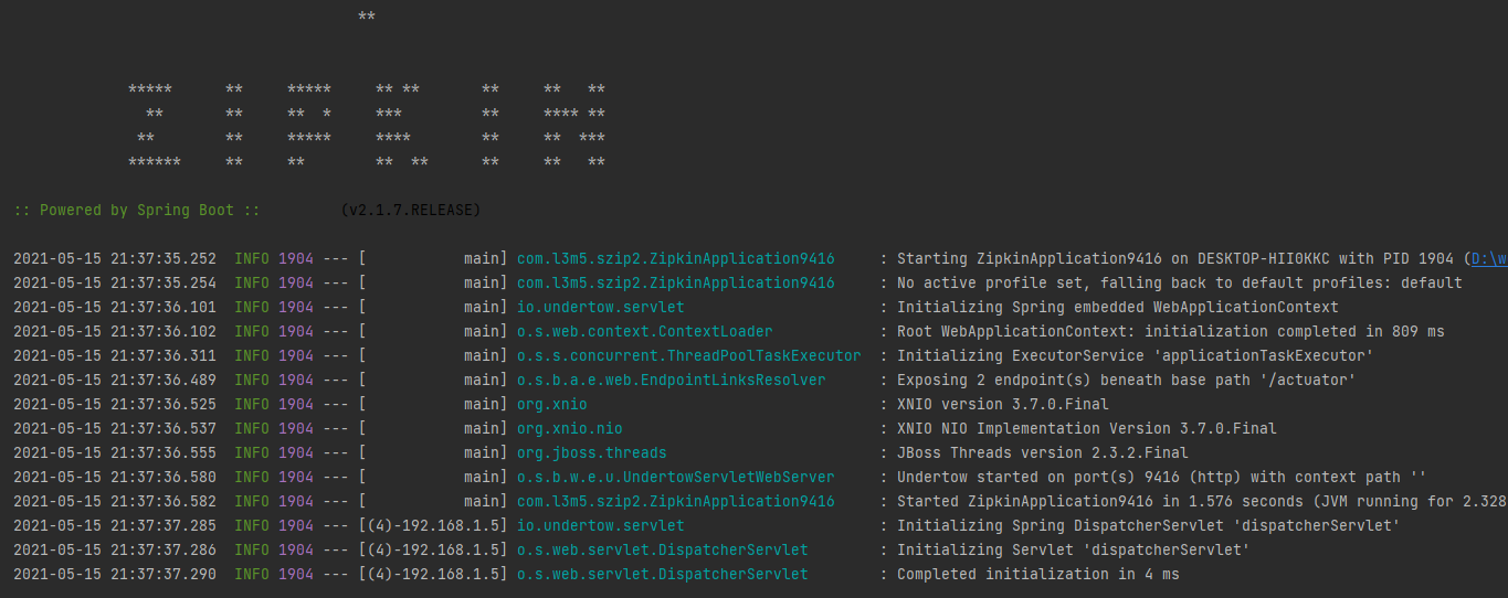 package com.myzipkin; import org.springframework.boot.SpringApplication; import org.springframework.boot.autoconfigure.SpringBootApplication; import zipkin2.server.internal.EnableZipkinServer; @SpringBootApplication @EnableZipkinServer public class ZipkinApplication9411 { public static void main(String[] args) { SpringApplication.run(ZipkinApplication9411.class, args); } } - 启动项目