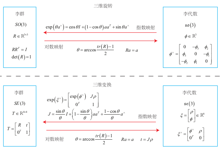 SO(3), SE(3), so(3), se(3) 的对应关系:
