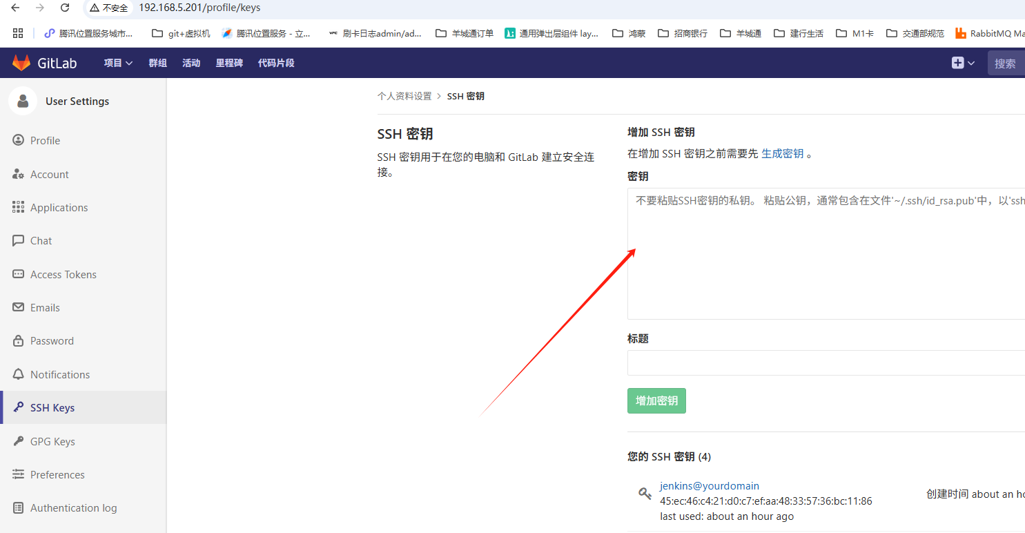 gitlab服务器需要添加jenkins服务器的id_rsa.pub