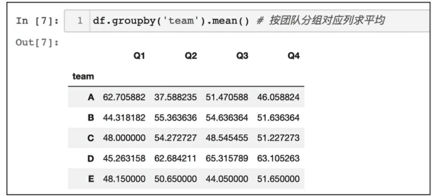 df.groupby('team').mean() # 按团队分组对应列求平均