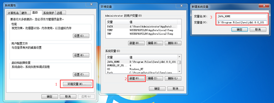 打开计算机-》系统属性-》高级系统设置-》环境变量-》新建(系统变量),如图所示:
