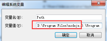 将Node.js的安装路径(也就是node.exe文件所在的目录)D:\Program Files\nodejs追加到环境变量Path中。