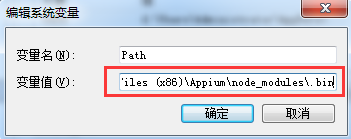 在Path中配置appium的环境变量,将安装的Appium文件夹所在目录\Appium\node_modules\.bin添加进path
