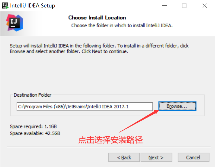 2、点击Next进入idea安装目录页面>>选择安装路径