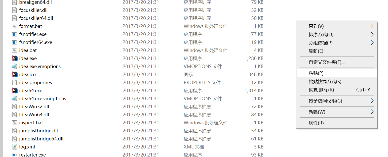 然后把刚才复制的jar包粘贴在这个目录里(注:粘贴的时候找个空白区域>>右键>>粘贴)