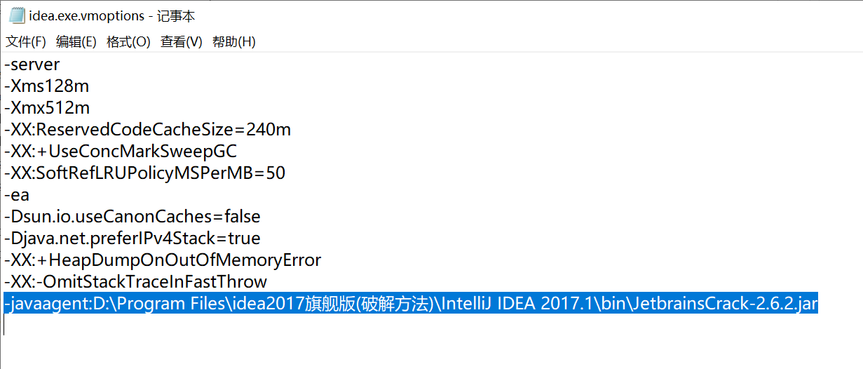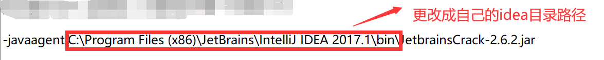 -javaagent:C:\Program Files (x86)\JetBrains\IntelliJ IDEA 2017.1\bin\JetbrainsCrack-2.6.2.jar