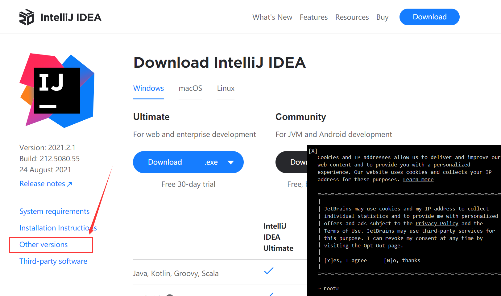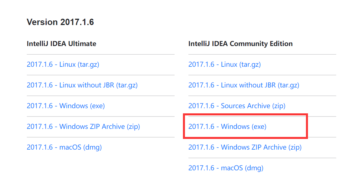 在官网https://www.jetbrains.com/idea/下载IDEA 2017.1版本