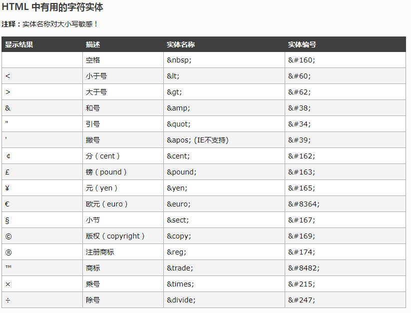 HTML中 字符实体