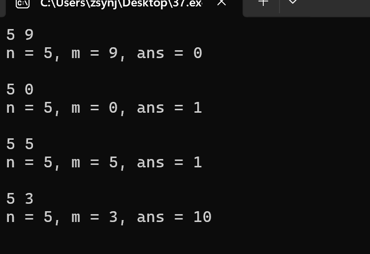 printf("n = %d, m = %d, ans = %d\n\n", n, m, ans);