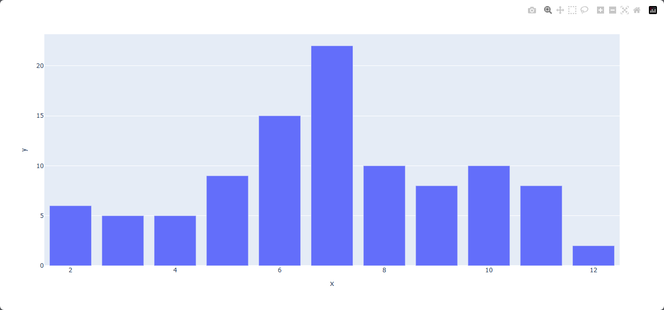 [Data Visualization] 使用Python Plotly库实现掷2个骰子结果之和的直方图绘制