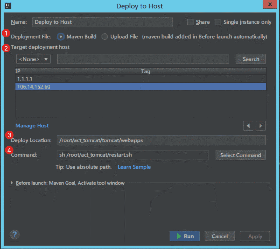 Maven Build:如果当前工程采用 Maven 构建,可以使用 Cloud Toolkit 直接构建并部署。