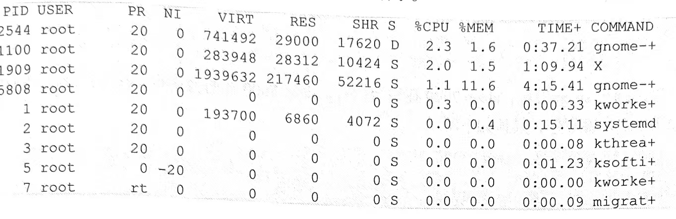 使用top命令可以查看nice级别,其中,NI列表示实际nice级别,PR列将nice级别映射到更大优先级队列,-20映射到0,+19映射到39,具体如下所示。