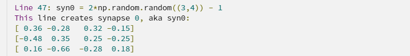 而当我们将 syn0,1 的值进行增减时,新墨西哥州的蝴蝶开始扇动翅膀。出于简洁性考虑,我们将 syn0,1 的值增加到 3.66,这一举动引发了一系列连锁反应——其他权重合力组成的「完美风暴」,从而降低 l2_error。