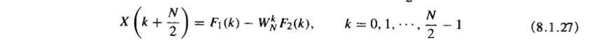 3.输出序列X(k)按k的奇偶分成两组。但在此之前,要先将输入x(n)按n的顺序分成前后两半