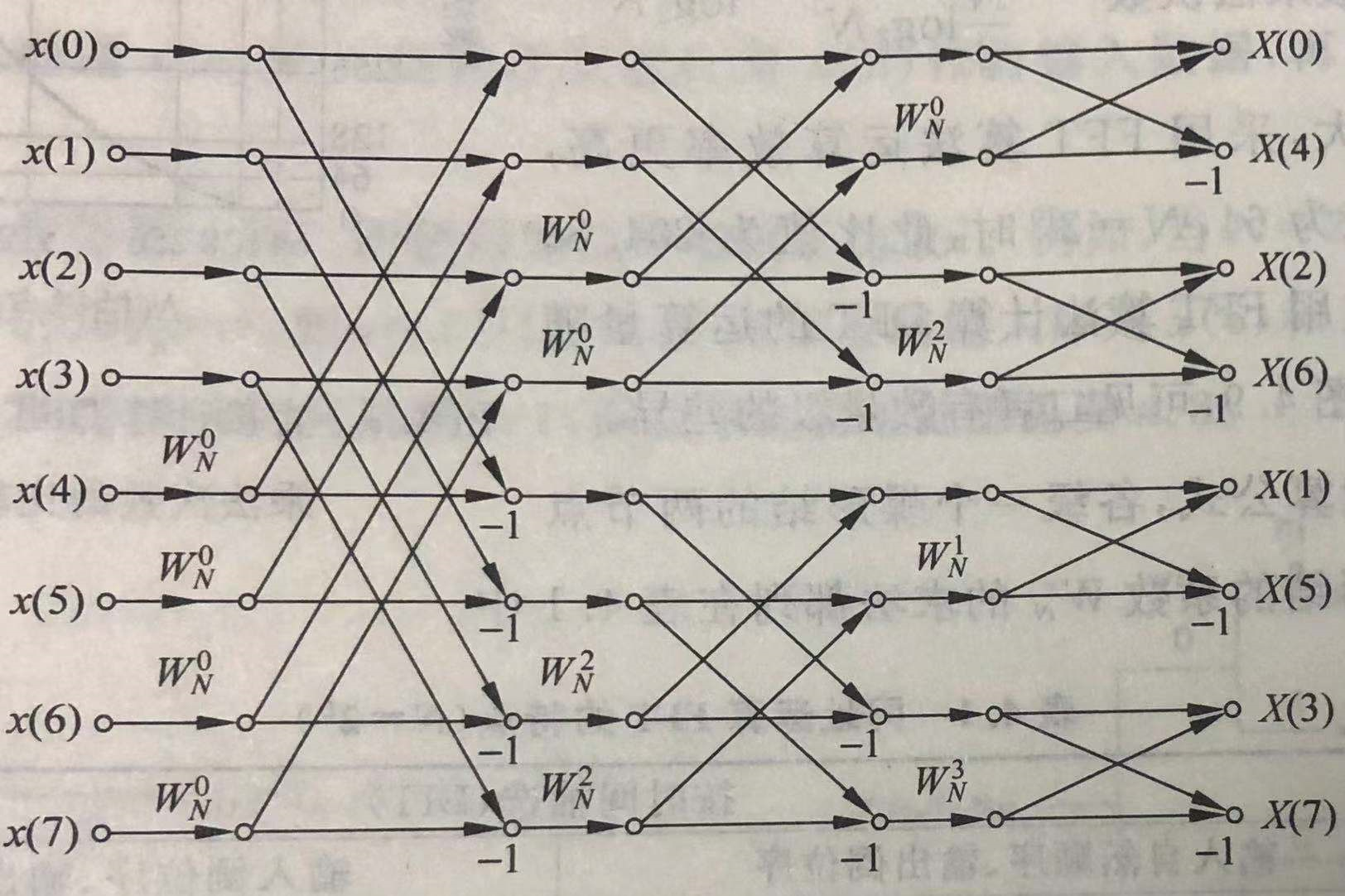 输入顺序,输出倒序FFT流图