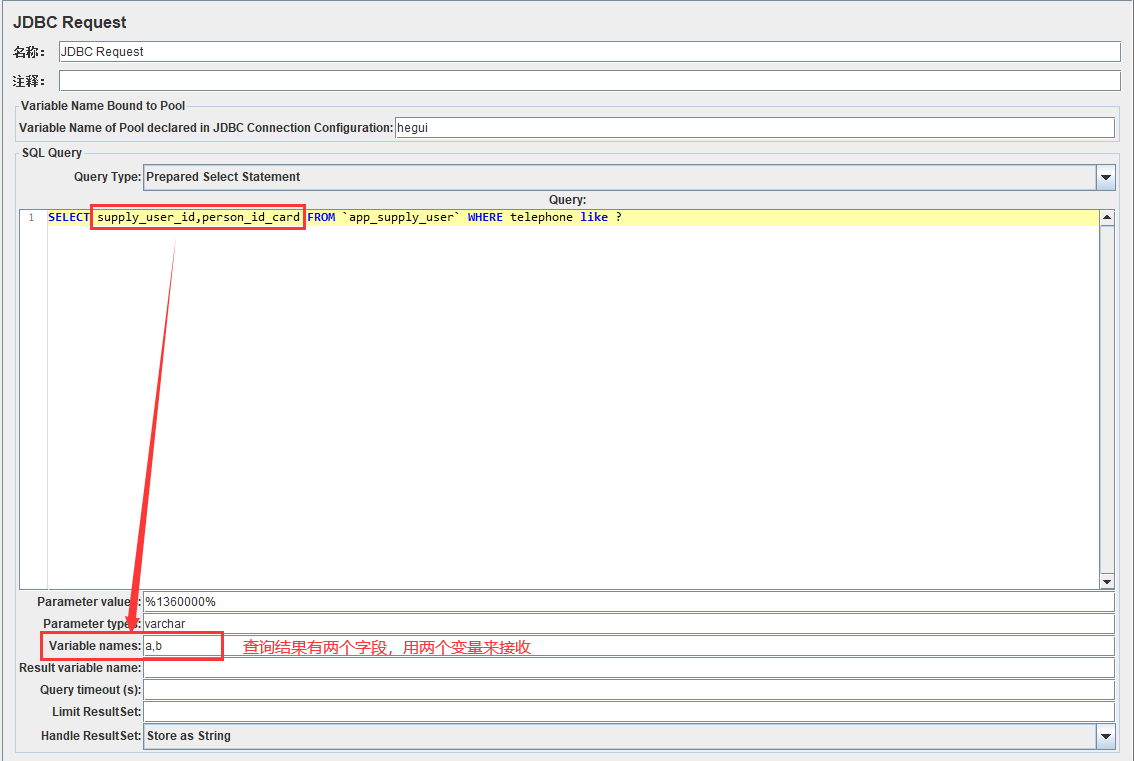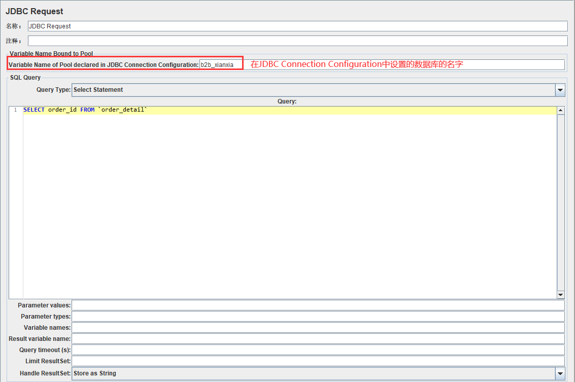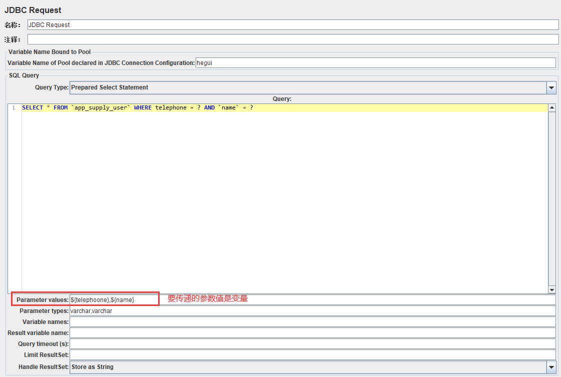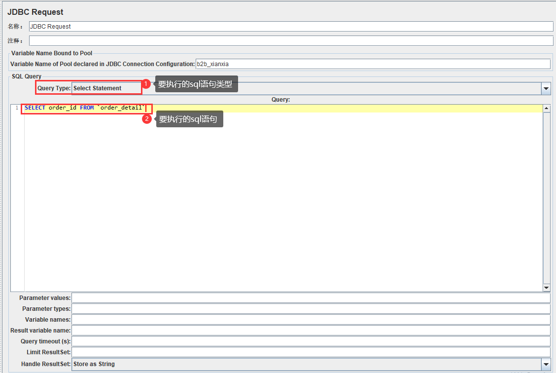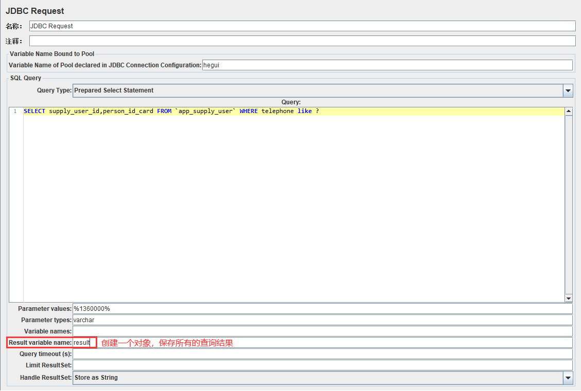 - Result variable name:创建一个对象变量,保存所有返回的结果