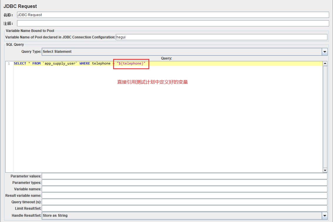 方法一:在测试计划中定义变量,在sql Query中使用变量