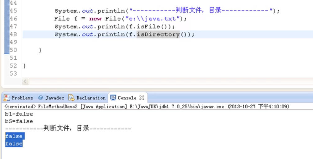 /*文件夹存在返回flase.不存在则创建。路径错误则报IOExp。
