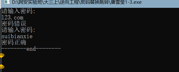 密码反转,实现输入正确的密码返回错误,输入错误的密码返回正确