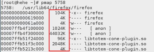 #pmap 5758 //查看进程中所运行的模块文件,可以看到每个模块所占用内存的大小都可以被4整除