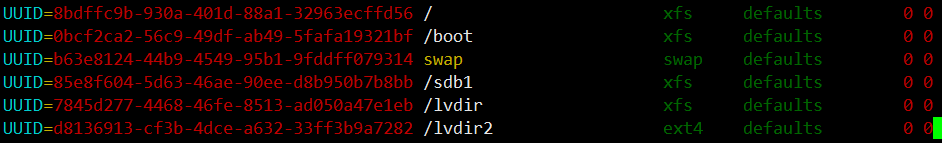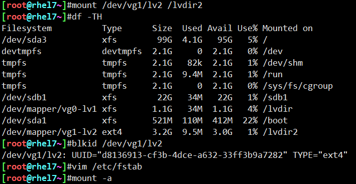 #blkid /dev/vg1/lv2 查看分区的uuid