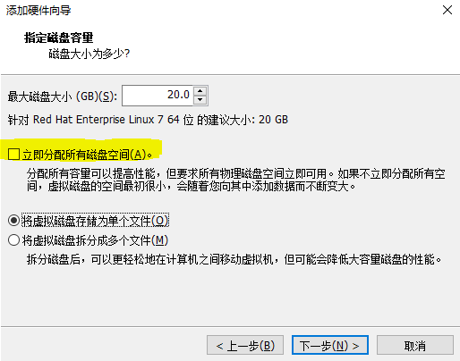 在VMware中,要是勾选了立即分配所以磁盘空间,这个就相当于普通模式,而不勾选则是精简模式